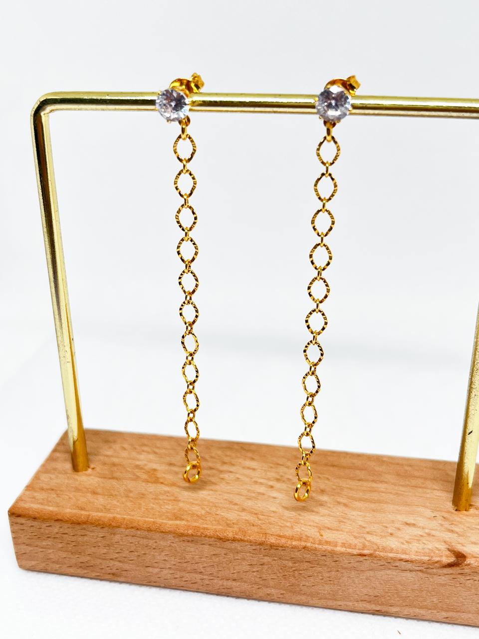 💎 Adicione brilho, sofisticação e movimento ao seu estilo com o Brinco Rabicho Ponto de Luz Correntinha.