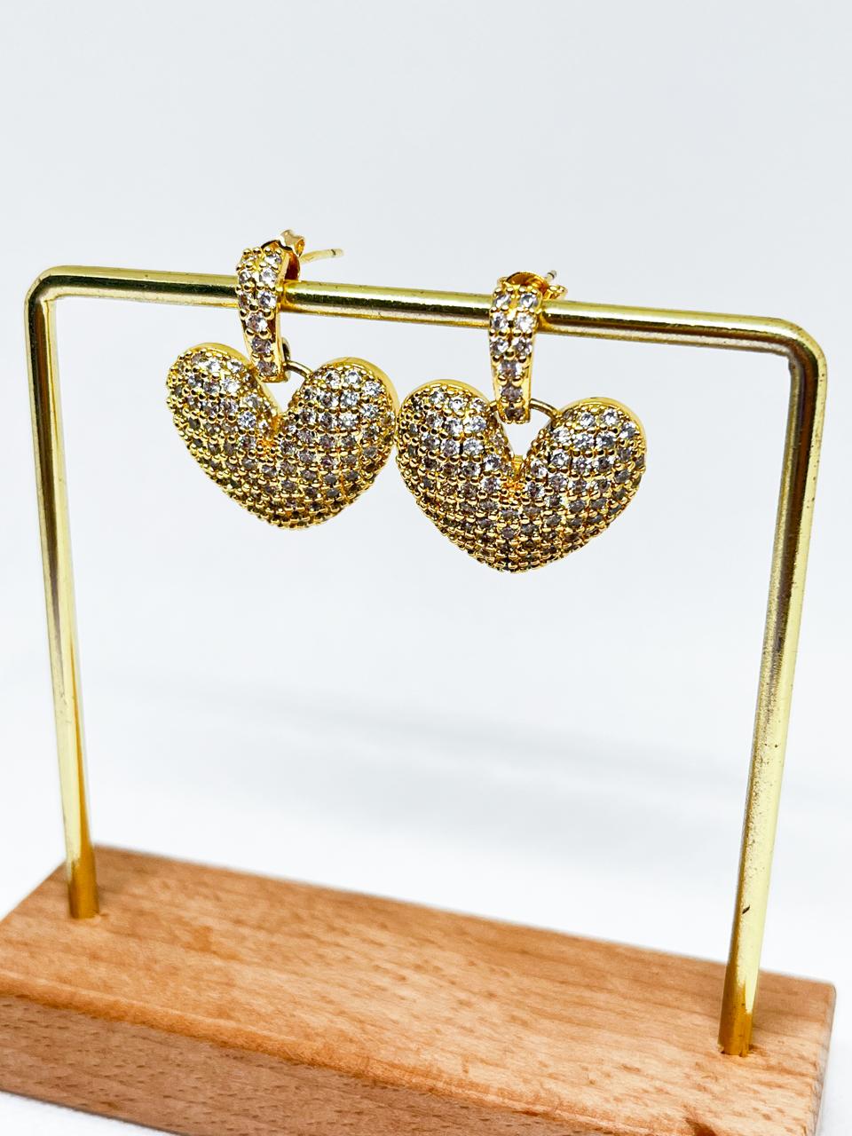 💎 Adicione sofisticação, brilho e muito amor ao seu visual com o Brinco de Coração Cravejado Grande.
