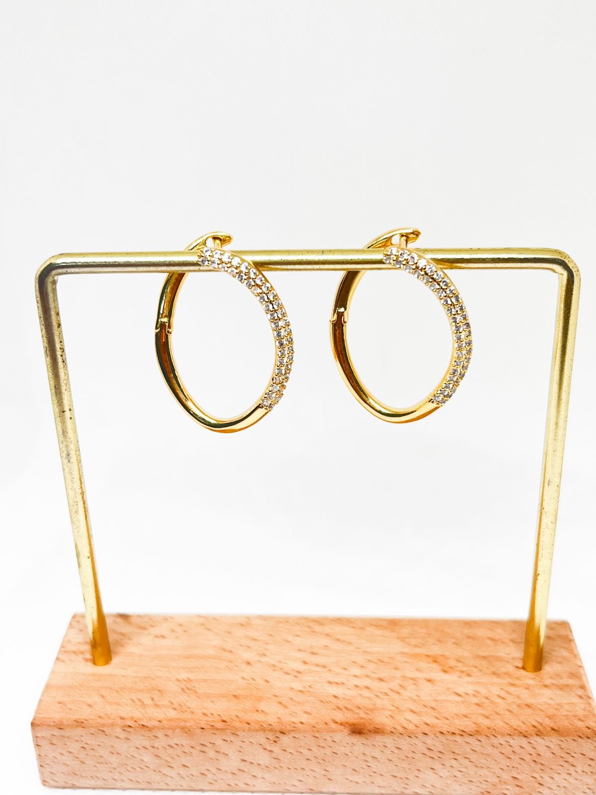✨ Brinco Oval Cravejado e Liso - Elegância e Sofisticação ✨
