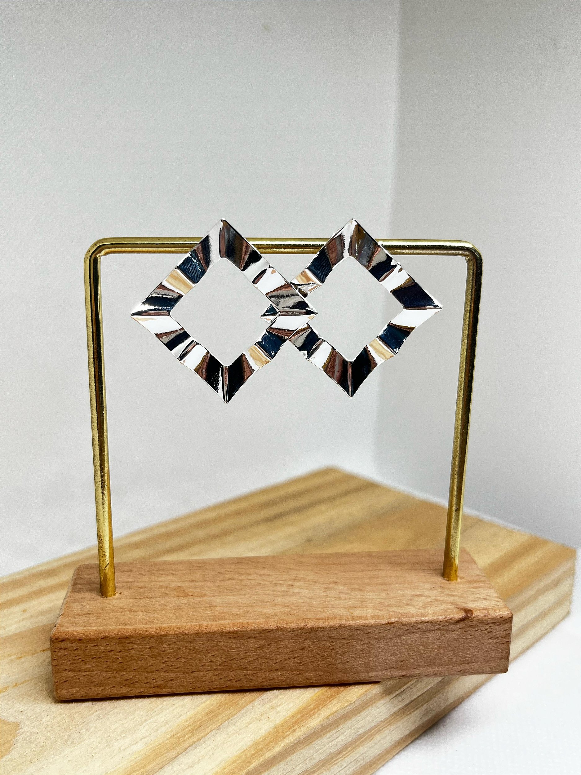 Deixe seu look ainda mais deslumbrante com o Brinco Quadrado Martelado Vazado! 😍
