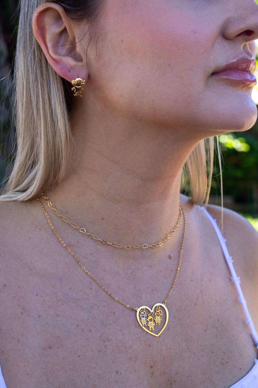 💖 Leve sempre perto de você quem mais importa com o Colar Coração com Filhos.